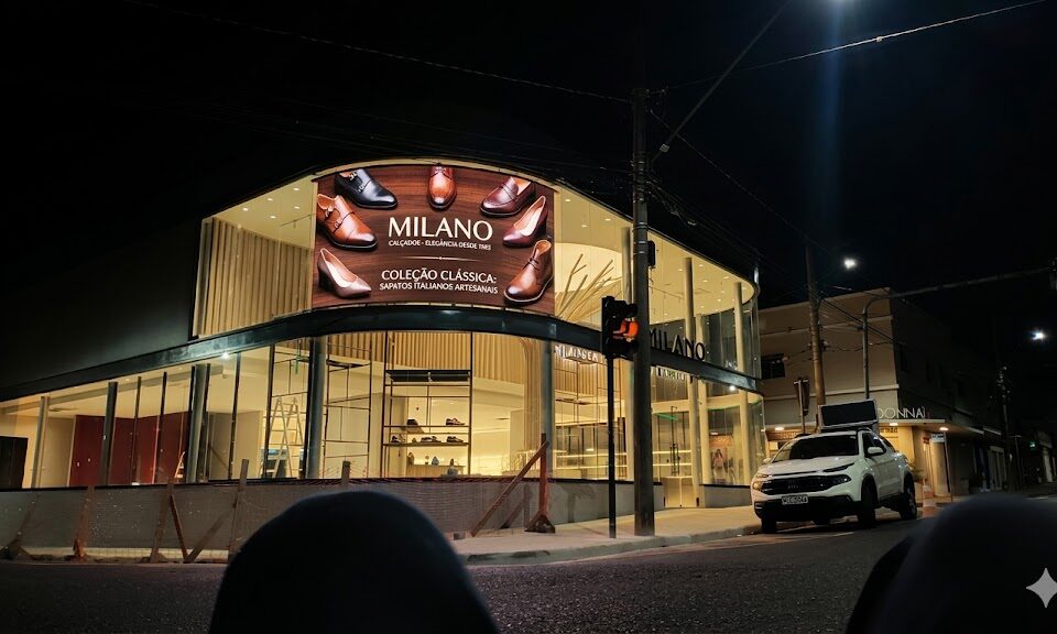 dezembro 14, 2025Published by RPShow on dezembro 14, 2025Categories Painel LED OutdoorPAINEL 3X2m OUTDOOR LOJA MILANO EM UBERABA – MGPainel P5mm Outdoor Calçados Milano Dimensões : 3x2m Uberaba – MG