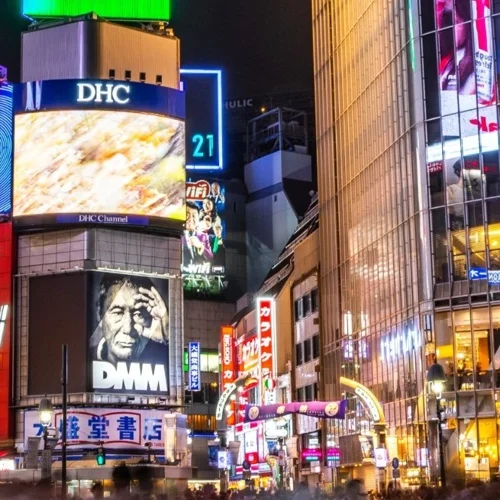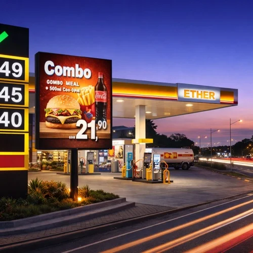 em painéis de LED.