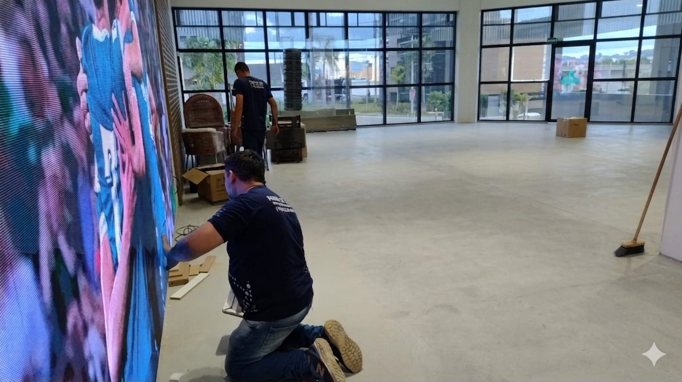 Painel 4x2m P2.9mm Indoor Instalado na empresa Bild em Uberlândia – MG