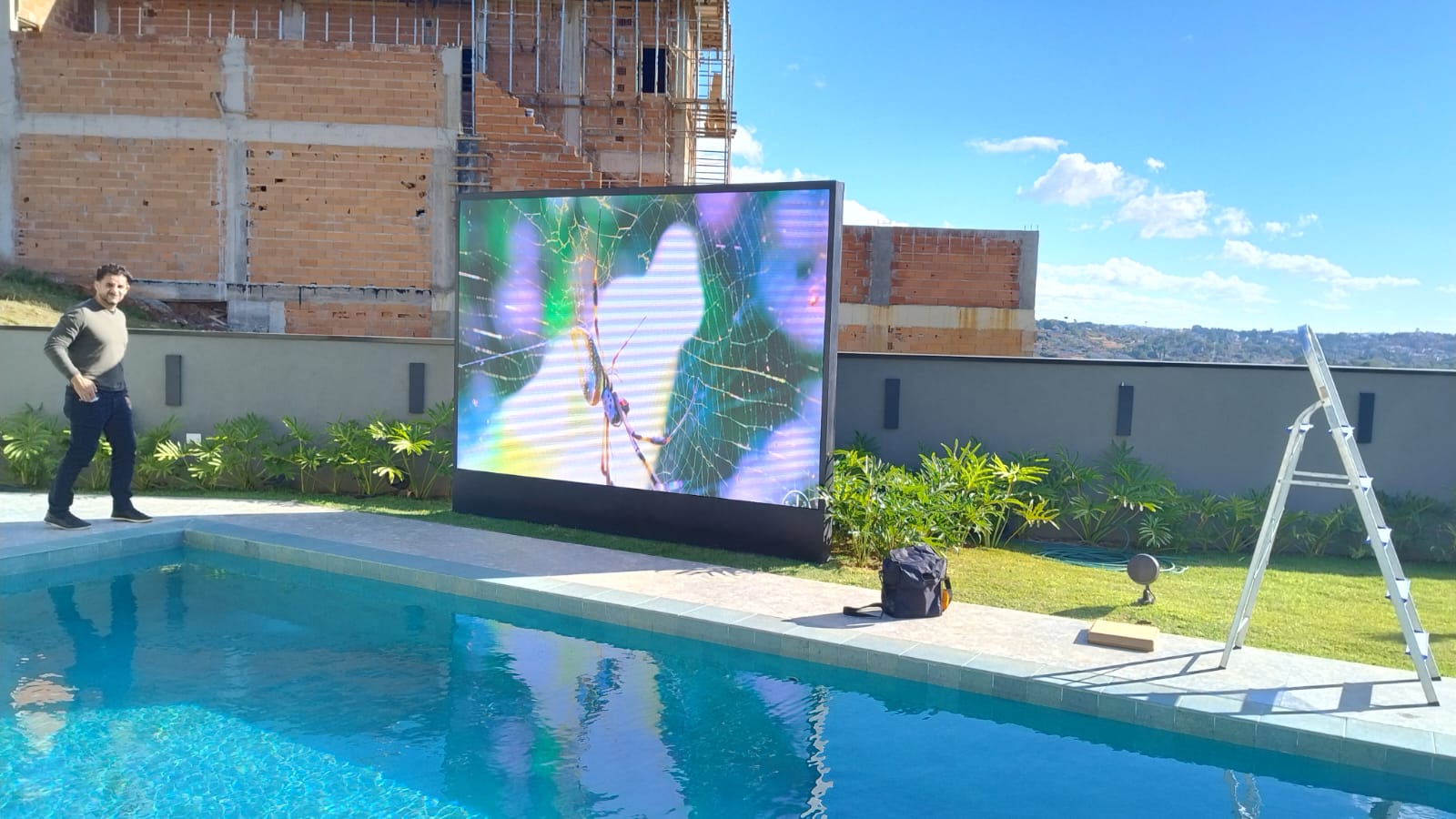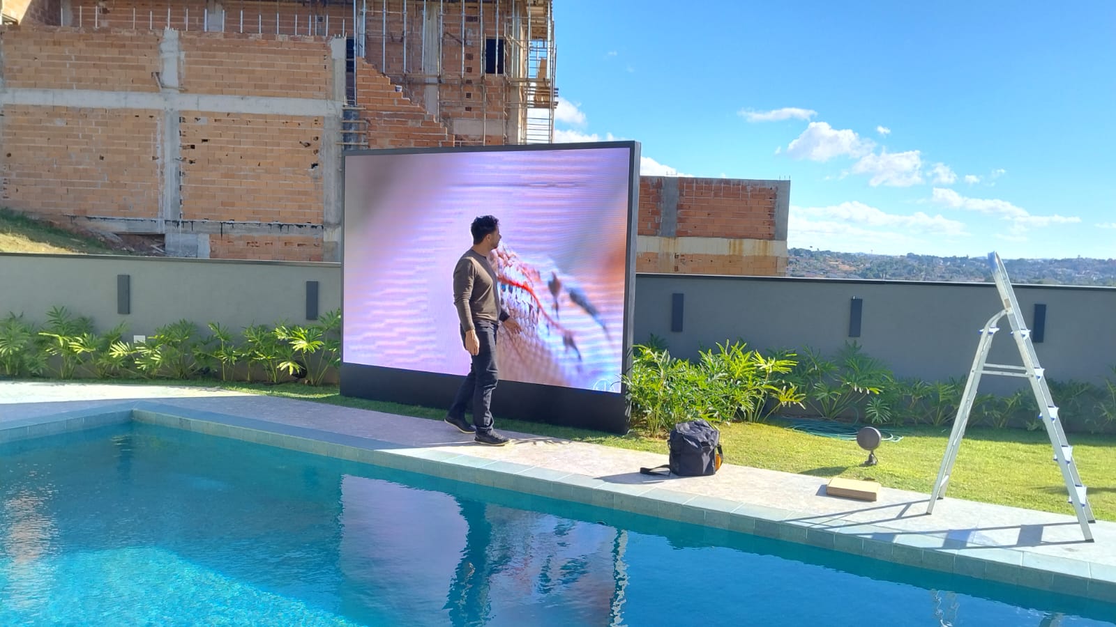 Painel P2.9mm 3x2m Outdoor Instalado em Residência Atibaia – SP